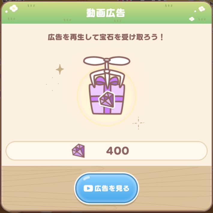 広告を2回再生して報酬を受け取ろう! | 宝石×200 |