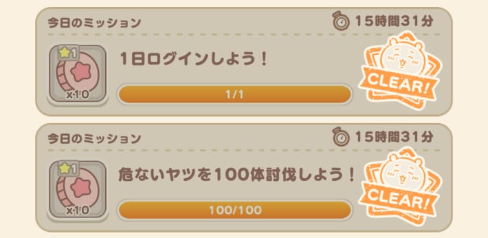 今日のミッションをすべて完了しよう! (※上記6種類を完了) |
