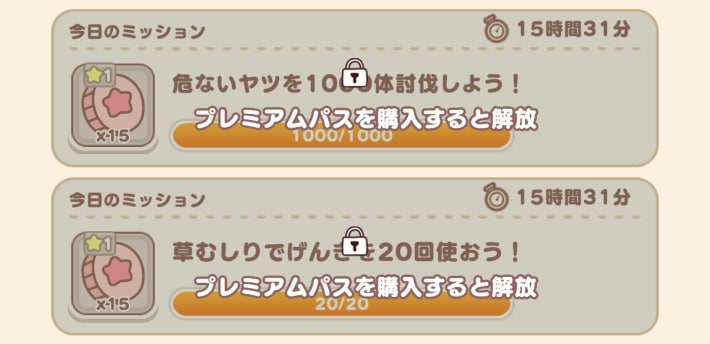 パスミッションの中には、プレミアムパスを購入していないと解放されないミッションがあります。プレミアムパス限定のミッションは以下の2種類です。