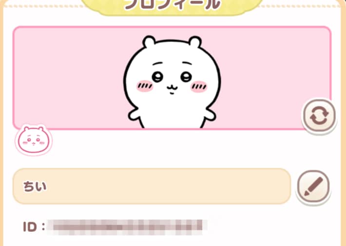 ちいぽけでプレイヤーIDを確認する時は、ゲーム画面左上にあるちいかわのマークをタップしましょう。プロフィール画面が表示され、自分のIDが確認できます。