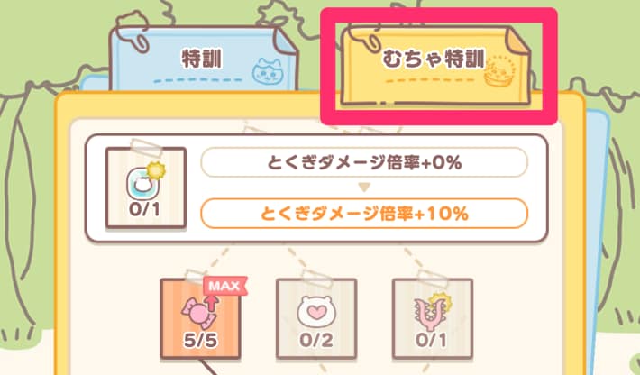 むちゃ特訓のこうげきアップは倍率が高いため、むちゃ特訓ができるようになったら優先的に解放を目指しましょう。