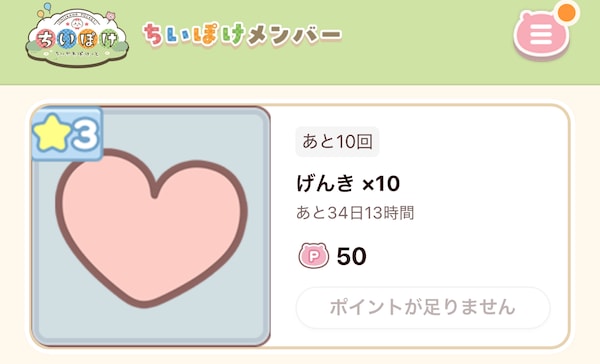 ちいぽけのげんきの回復方法は、「時間経過」や「動画広告再生」などです。
