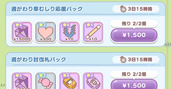 | ▼ショップ購入 | 日替り/週替り/月替りパックで購入 ※課金が必要 |