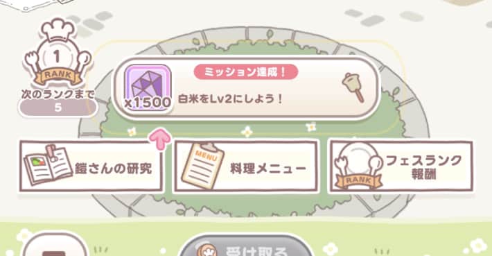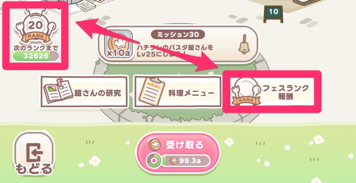 ブースから料理コインを回収する時に、一緒にフェスランクポイントも獲得できます。ランクポイントが貯まるとフェスランクがアップし、料理コインの獲得量が増加します。また、ランクアップ報酬で直接料理コインが貰える場合もあります。