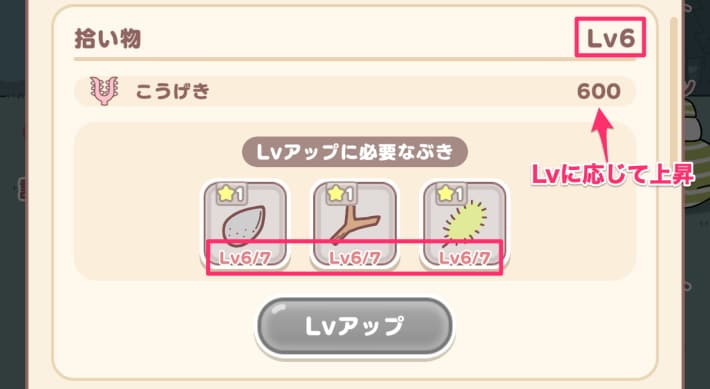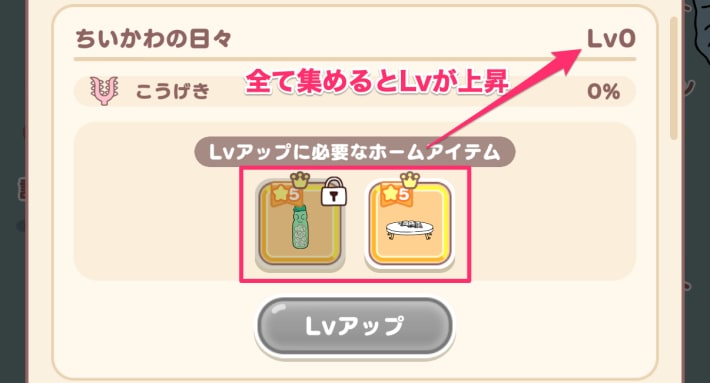 指定アイテムにレベルが存在する場合は、指定アイテムのレベルに応じてアイテム図鑑のレベルが変動します。レベルに応じてつよさの上昇量も増えるので、指定アイテムのレベルを上げればその分だけつよさを上昇させることが可能です。