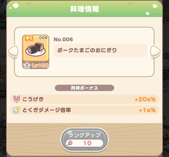 大きいアメは、料理レベルが100レベルに到達した料理のランクアップにも使用します。大きいアメの入手方法は限られるため、余裕があれば料理のランクアップを行いましょう。