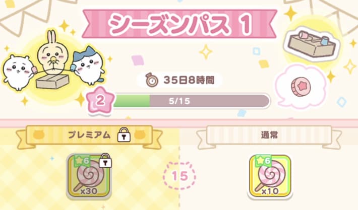 プレミアムパスの場合、通常報酬に加えてプレミアムパス報酬でさらに大きいアメを獲得できます。