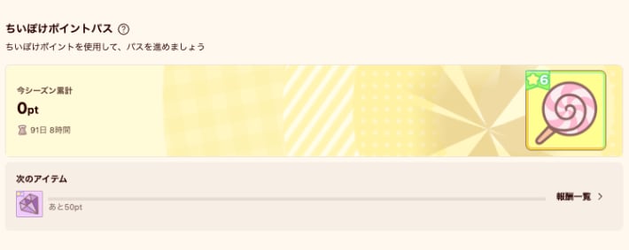 ちいぽけの大きいアメは、シーズンパス報酬やアプリ内・WEBストア課金で入手することができます。