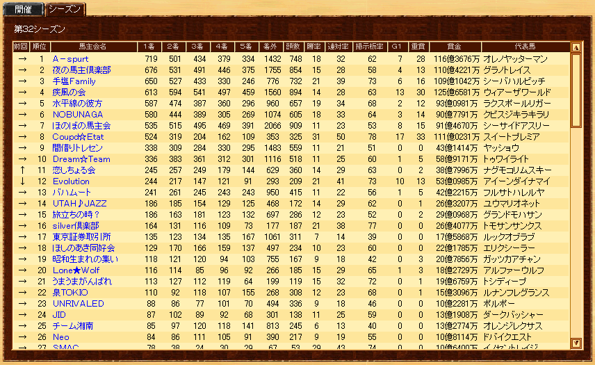 第32シーズンの結果は17位でした。昨Sより順位が2つ上がりました。