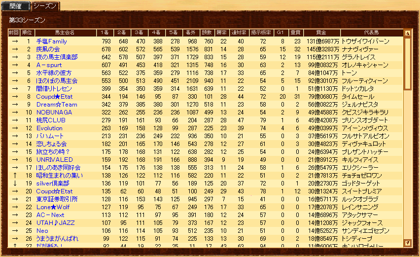 「ナド・アルシバ第33シーズン馬主会ランキング」をウィキ内検索