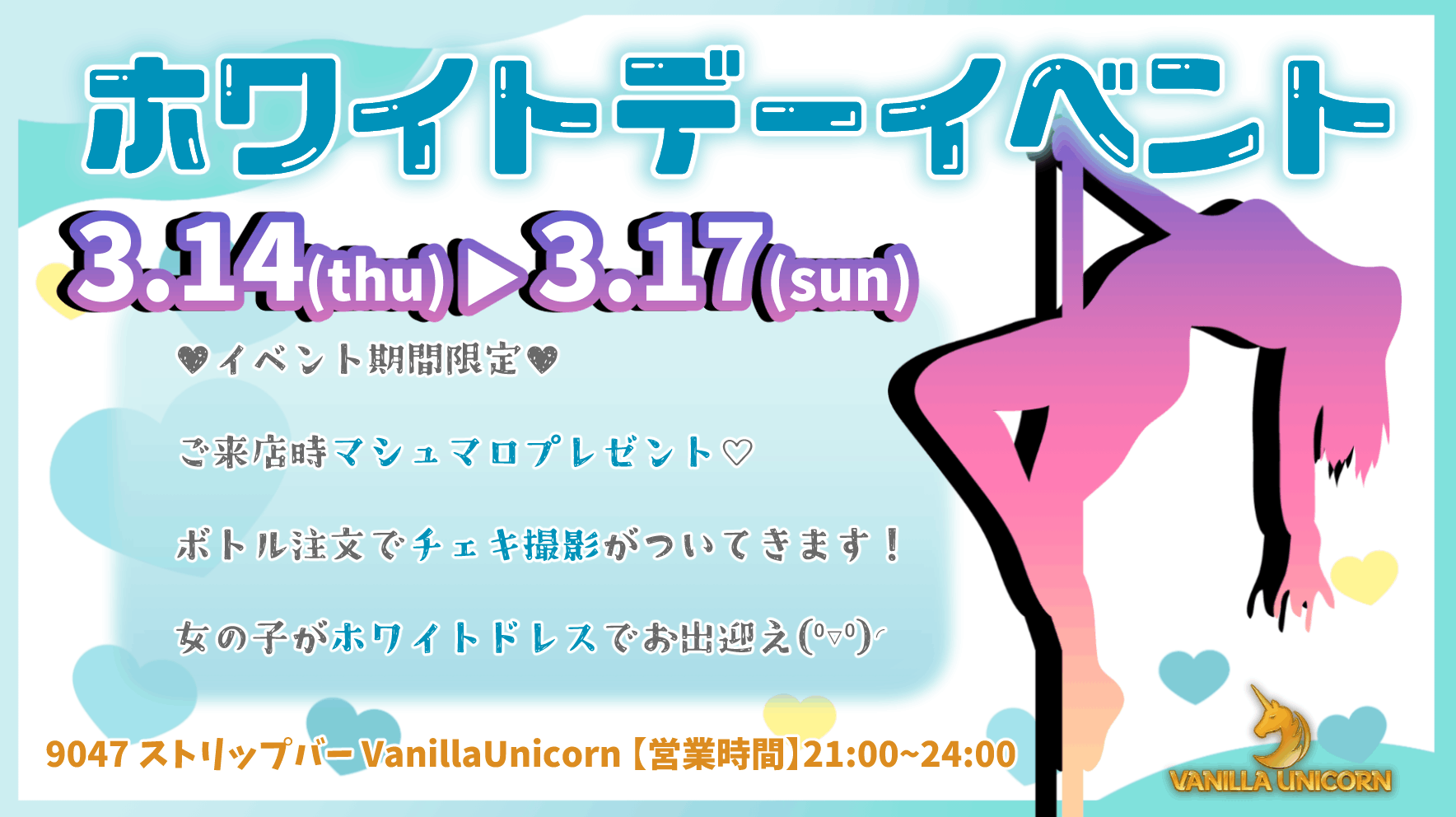 3月14日(木)から17日(日)まで、9047番地のVanilla Unicornにて