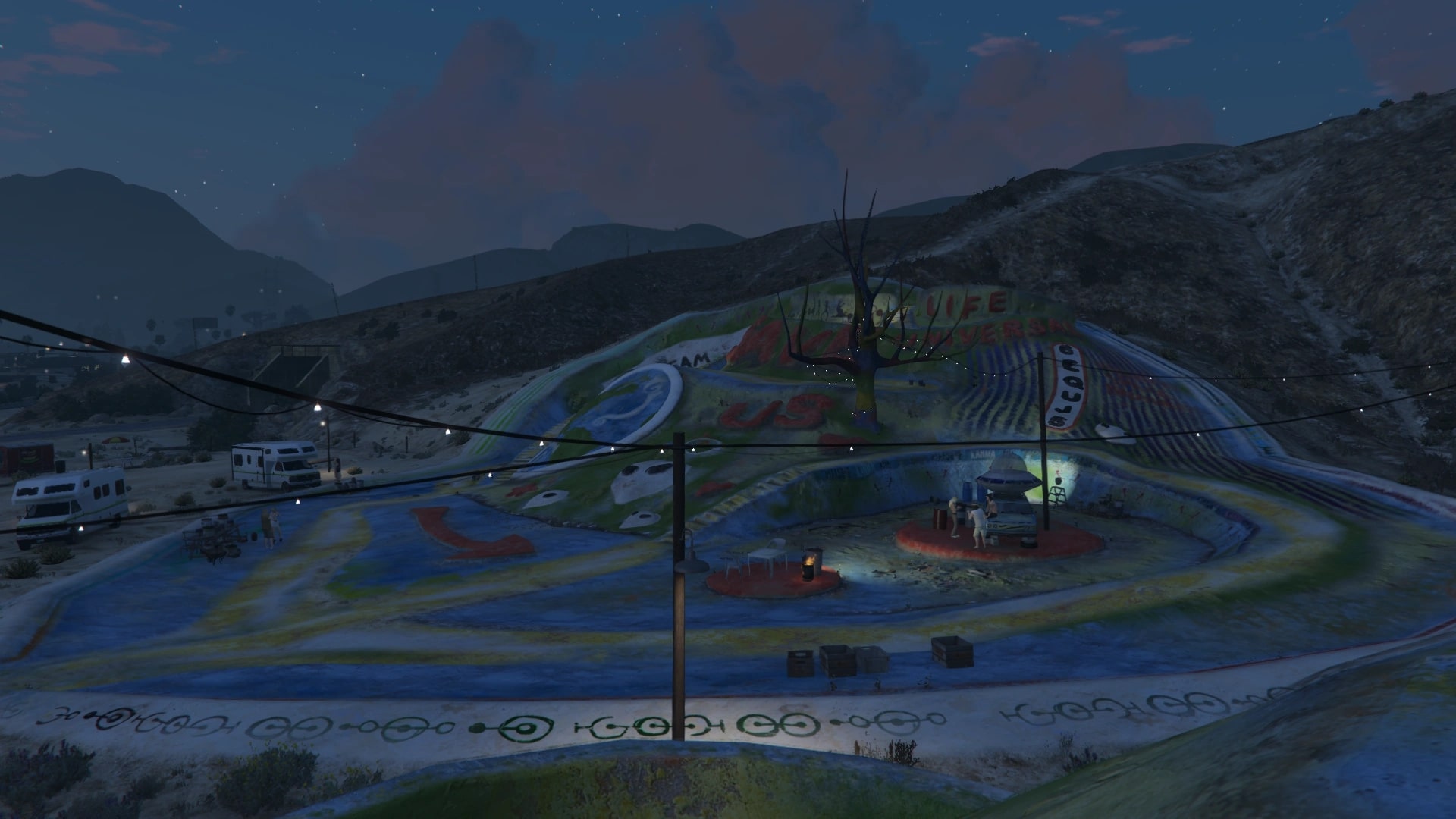 広場には、宇宙人の存在を示唆するような絵や、