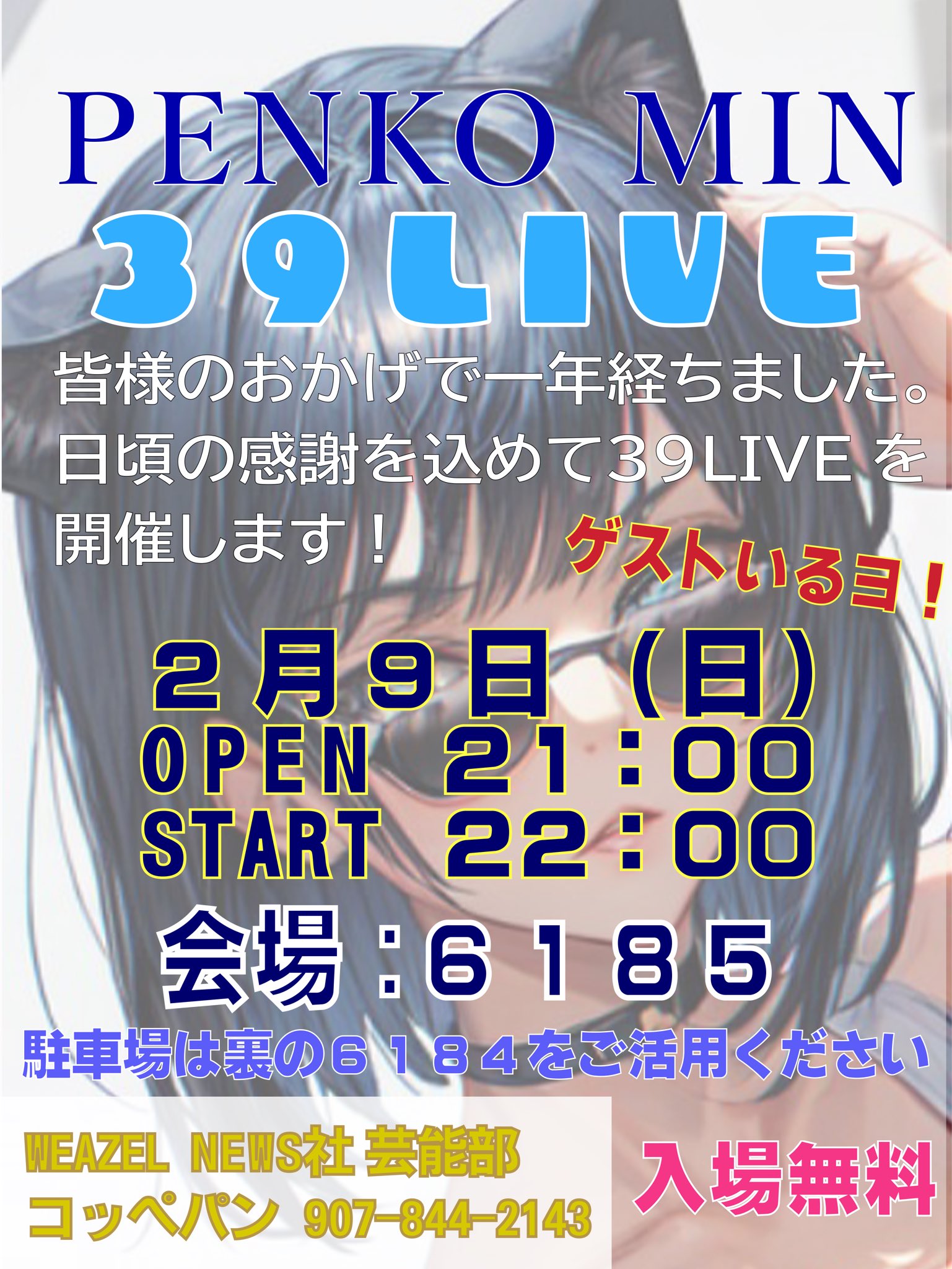 PENKO MINさんのライブ「39LIVE」が開催されます。