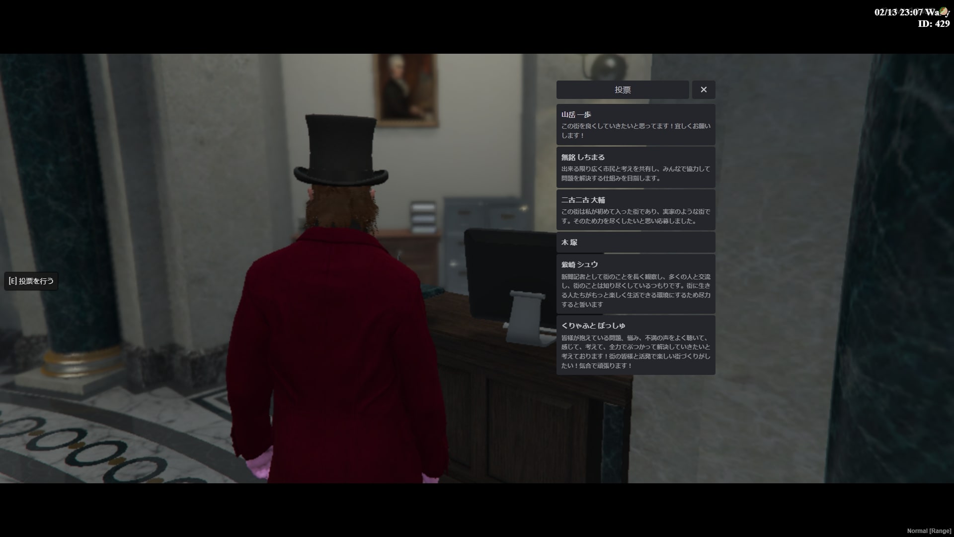 上記の写真のように候補者の名前と自己PRが表示されるので、その中から選んで投票してくれ。