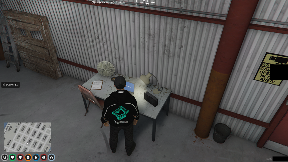 2.倉庫内のテーブルに近付きEキーでクロックインする