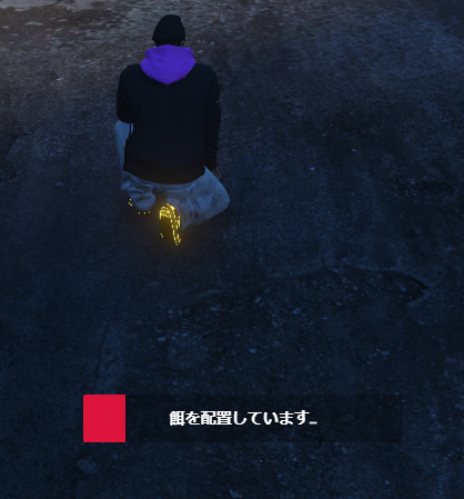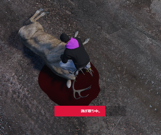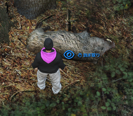2.倒した動物に近付き Alt+右クリック で剥ぎ取りを実行する