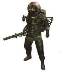 MYO̅JO̅製の宇宙服を纏い、火炎放射器を武器として使う。