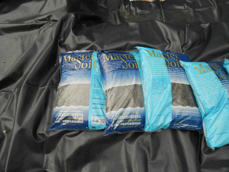 真ん中のくぼみに小石を置いて、周りには、アクアリウム用のマスターソイルを使った。