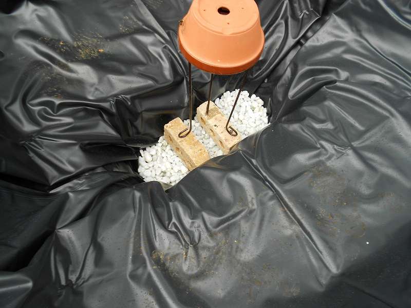 余裕をみて、穴の大きさの約2倍の大きさのプールライナーを使った。