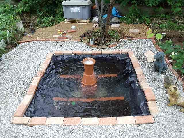 ▼あとは、レンガなどで、池の周りの装飾。