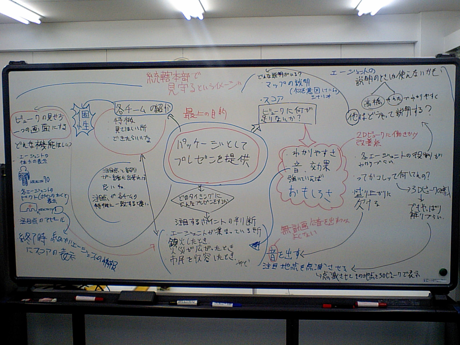 各エージェントが何の記号で表され、どのような行動をして、結果、どんなよい事があるのか、等の説明を解りやすく、簡潔に提示すればよいのではないかと考えた。