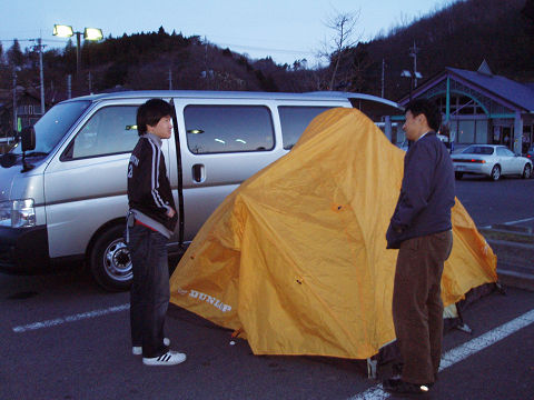 ツインリンクもてぎ付近の道の駅でキャンプ。朝は寒い。