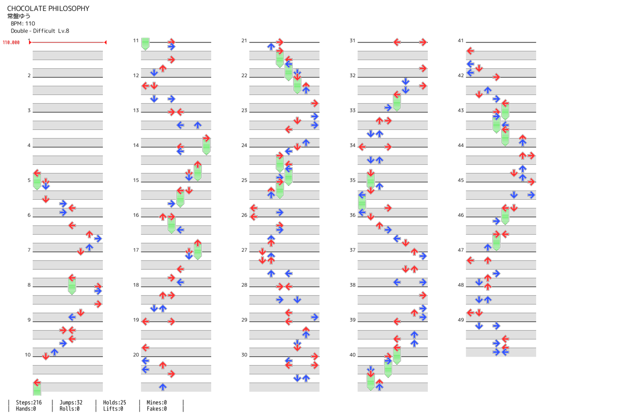 - 全難易度共通1P←スタート。FAから縦2連と若干の前交差を含む渡りが主な譜面。低BPMなので8分は多かれど問題にならないだろう -- 名無しさん (2018-02-05 22:26:09)
