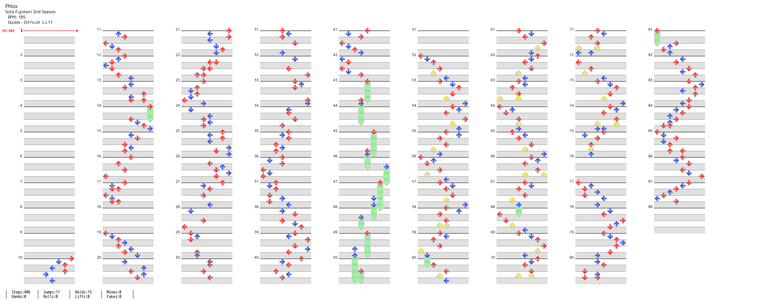 - 若干のリズム難要素はあるが繰返しがメインなのでそこまで苦労はしないと思う。8分もカニ渡りで細切れが多いのでこちらもそこまで苦労はしないはず………が、ラストだけ2P外側に逃げるビジ→下り渡り7連と言う全く傾向の異なるラス殺しが控えています。電池、フルコンボ、パフェ狙いは要注意。自分もここでパフェ逃しました(>_<) -- 名無しさん (2023-03-12 17:08:21)