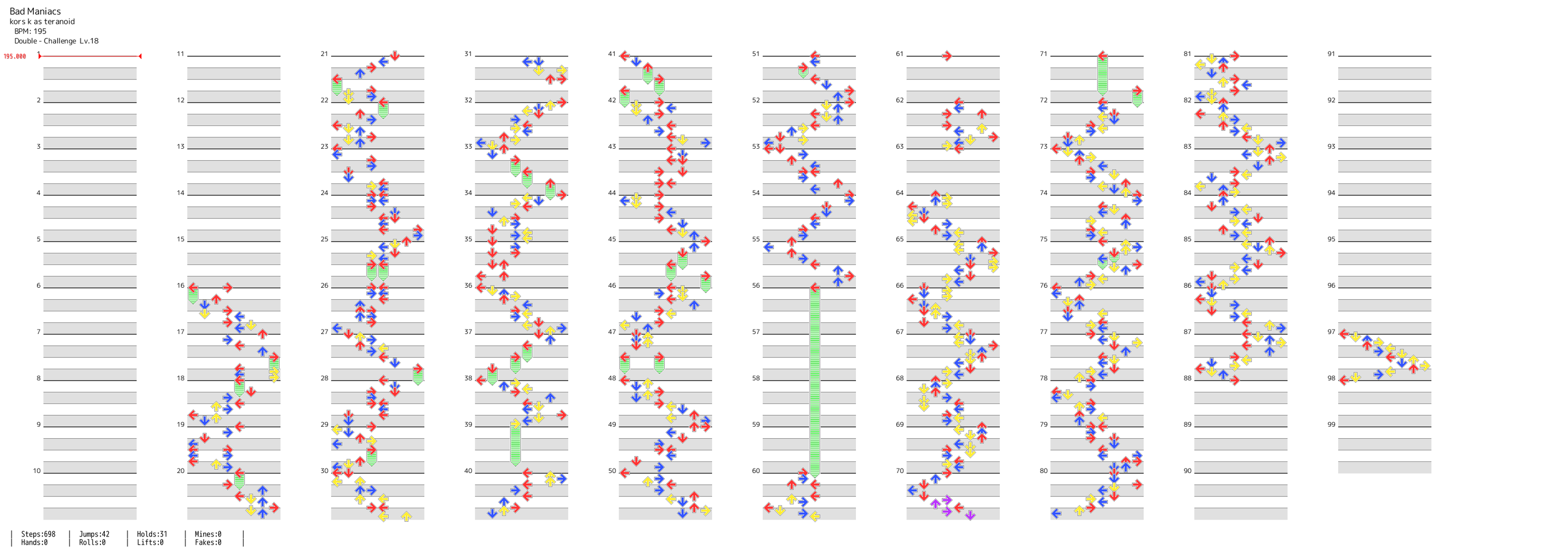 - 激が16の中ではかなり強めなのに対してこっちは18の中では比較的マシな方。BPM200近い16分がひっきりなしに飛んで来るとは言っても18として見るとそこまで酷い配置の物はほぼ無い。流石に終盤捻りが混じり出してからラストの16分往復は難しいが18中ぐらいに収まるんじゃないだろうか。 -- 名無しさん (2025-05-17 19:26:49)