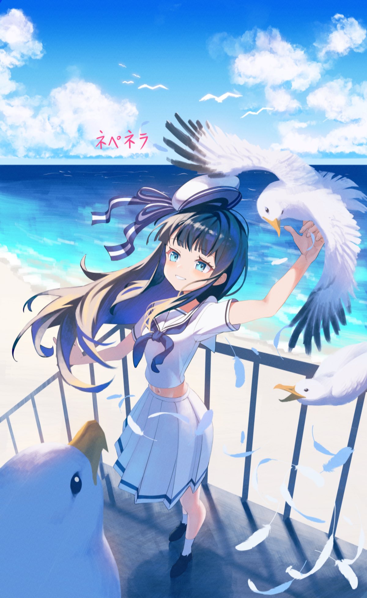 ●白と黒を基調にしたセーラー服にセーラーキャップを着こなす。