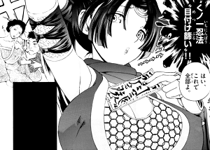 なお、この女性の視線誘導は同作者による漫画「トキワ来たれり!」に登場するくノ一忍法「目付け篩るい」と似た技術とされており、女を捨てる事を旨とする武術が多い中で、むしろ女である事を特長とする高次元の技術。同じ女性や感情のコントロールに長けた人物に対しては効果がないとされている。