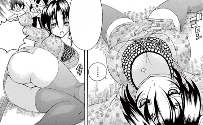 女性が男性の敵に対して、乳首や乳輪、お尻などに視線を誘導し隙を作る技術。