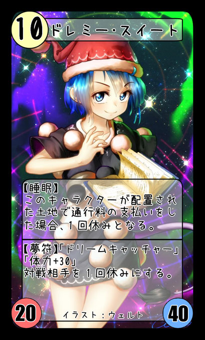 このキャラクターが配置された土地で通行量の支払いをした場合、1買い休みとなる。