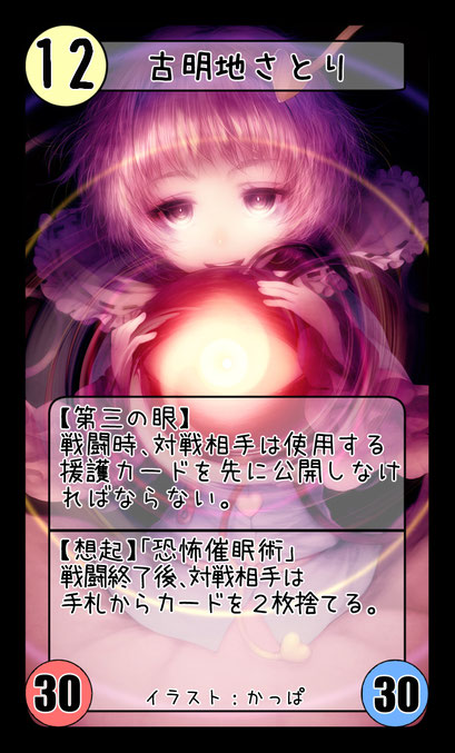 【第三の眼】 戦闘時、対戦相手は使用する援護カードを先に公開しなければならない。 |