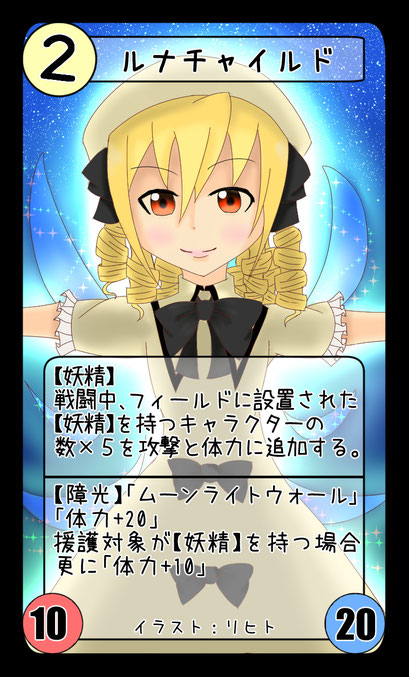 【障光】「ムーンライトウォール」 「体力+20」 援護対象が【妖精】を持つなら更に「体力+10」 |