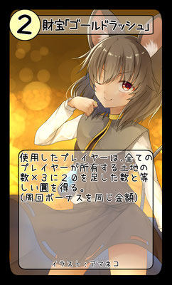 使用したプレイヤーは、すべてのプレイヤーが所有する土地の数×3に20足した数と等しい圓を得る。 (周回ボーナスを同じ金額) |