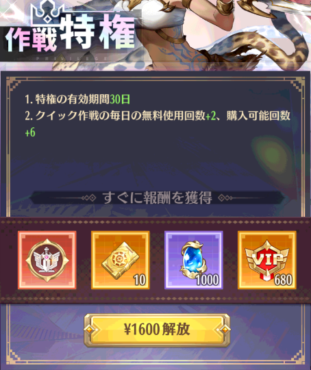 作戦特権ではそれを1日8回分も上げてくれて1ヵ月間有効だ。