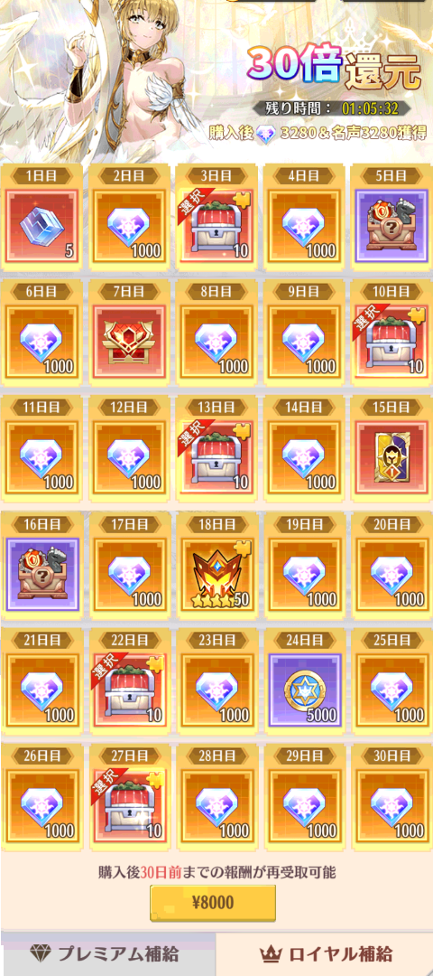 もらえるものは違うが、赤秘霊の欠片50の即時支給パックが¥15800することを考えればまあ・・・