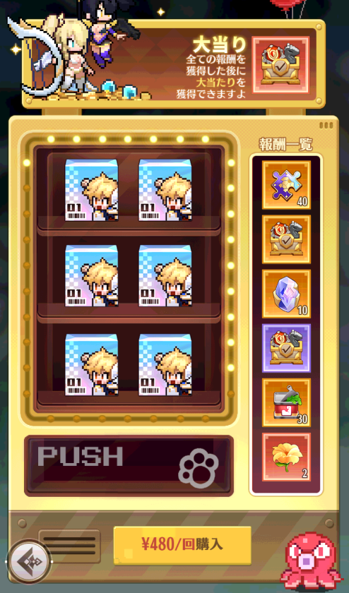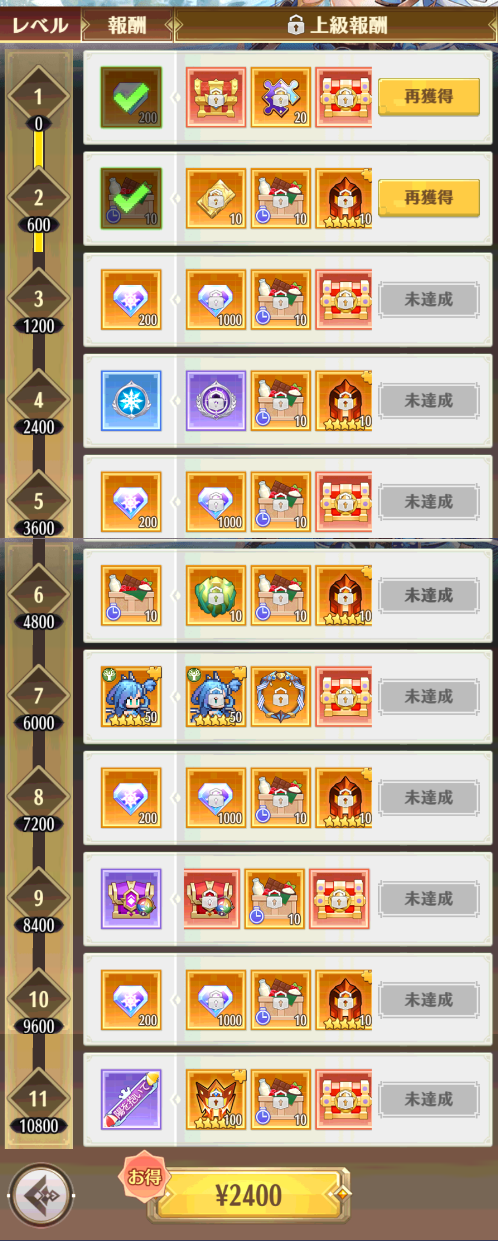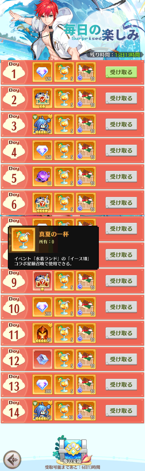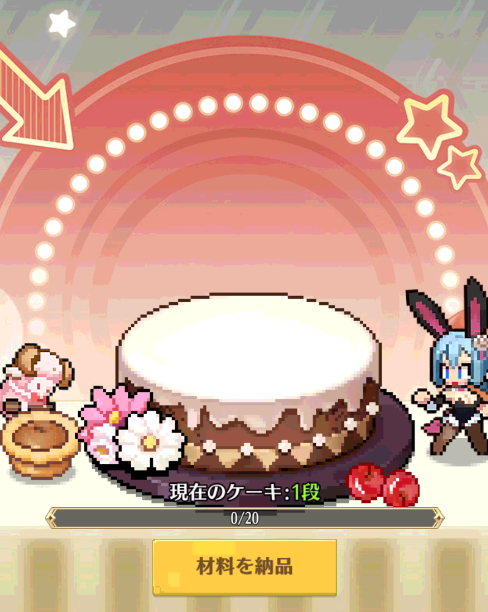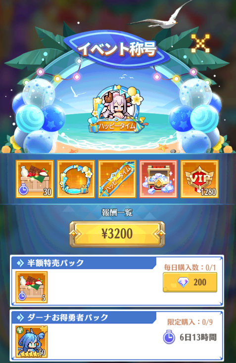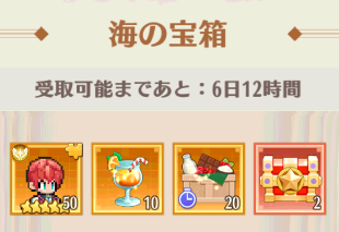 イベントパック(半額特売パック)→毎日の楽しみ(ログボ)→波乗り大作戦(冒険)→ケーキ作り→