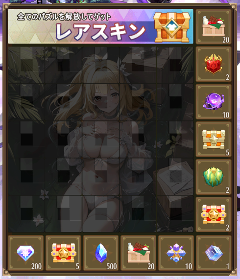 (秘密商店5、光召喚10、紋耀合成1回etc)→サマーパズル(幸運パズル)→カードめくり→星願召喚→