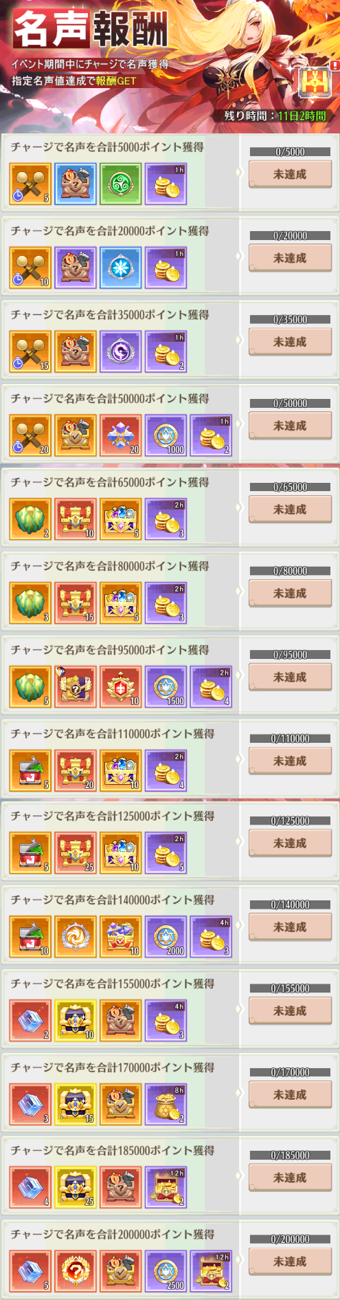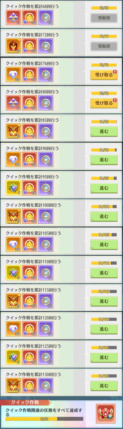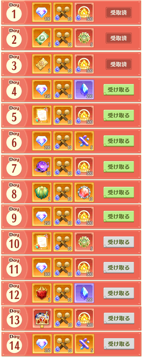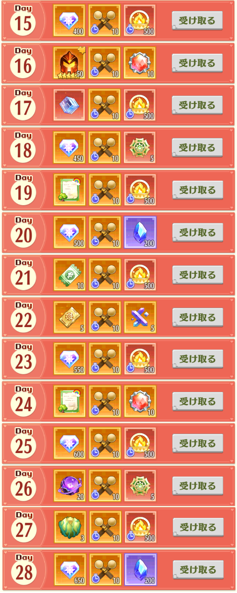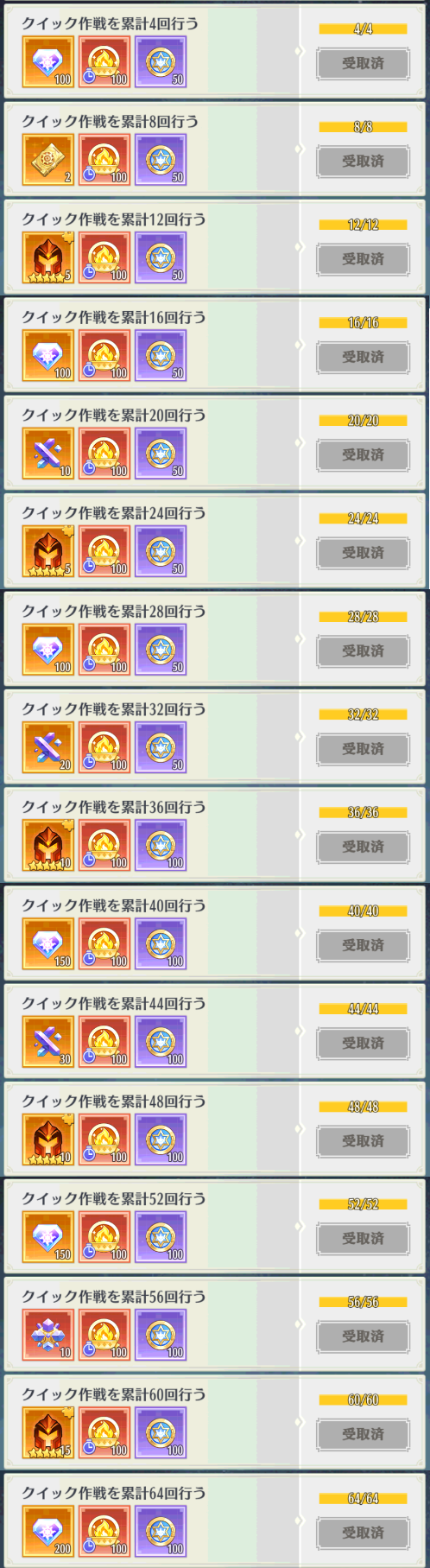 また速攻クリア報酬があり、最短4日で全難易度クリアすると一番多く報酬が貰える。