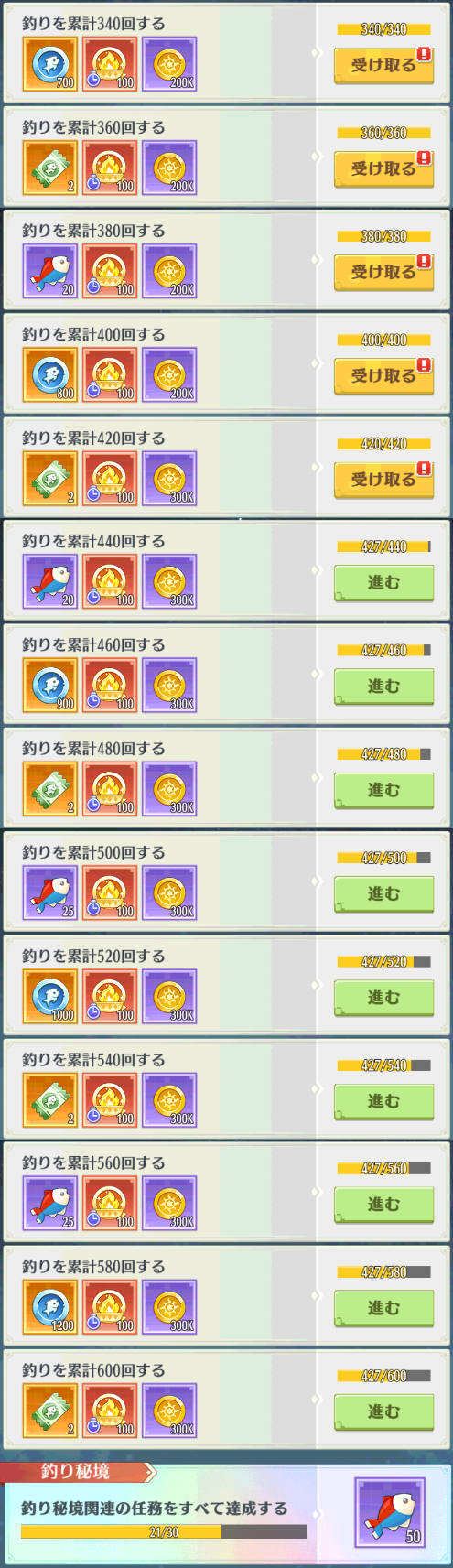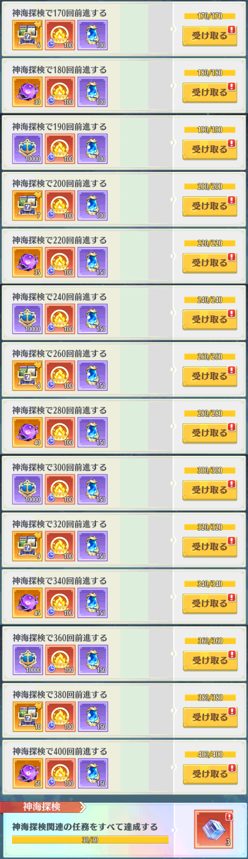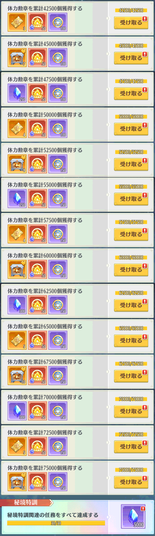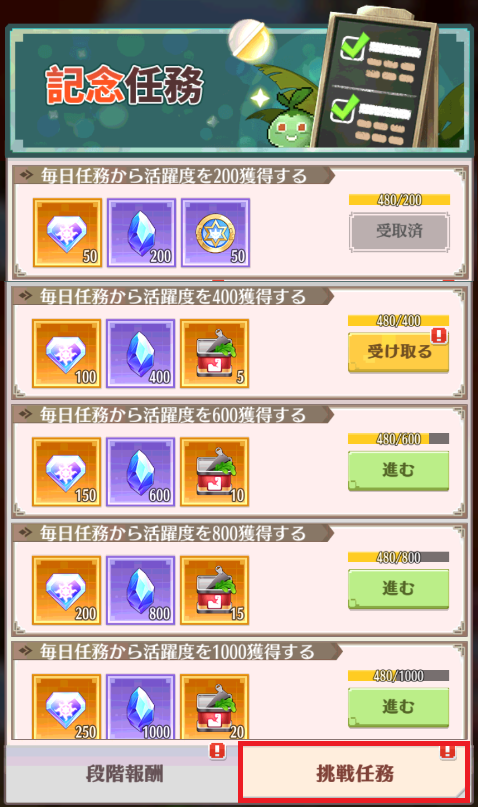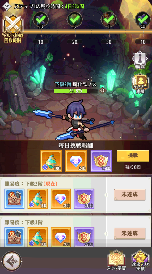 また速攻クリア報酬があり、最短4日で全難易度クリアすると一番多く報酬が貰える。