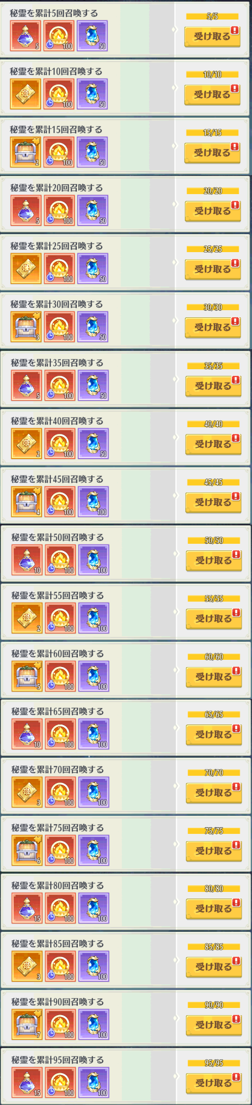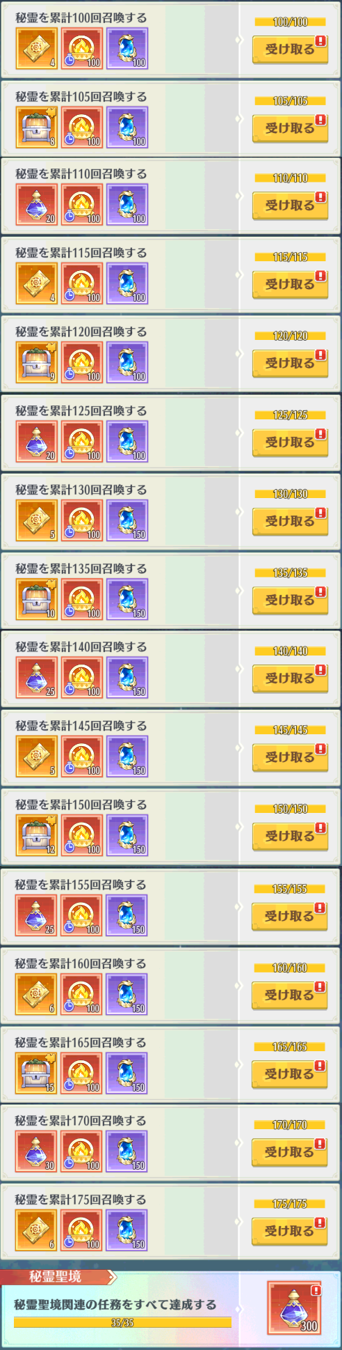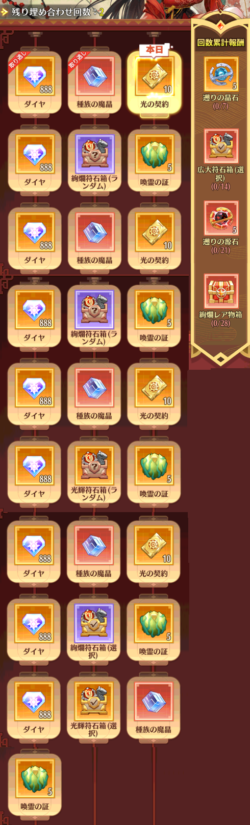 魔龍の試練3回→神使祝福(もも肉、喚霊の証回収)→累計チャージ(ダイヤ回収)
