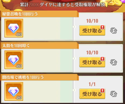 20000ダイヤ到達しないとダイヤ貰えないので毎日忘れずに