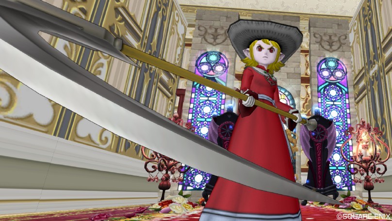頭:むぎわらぼうし カラー1:ピュアスノー 体上:くすしのローブ カラー1:レッド / カラー2:ピュアスノー 体下:みかわしの服下 カラー1:レッド 足:みかわしのくつ 冥王の大鎌 画像協力:こいし さん |