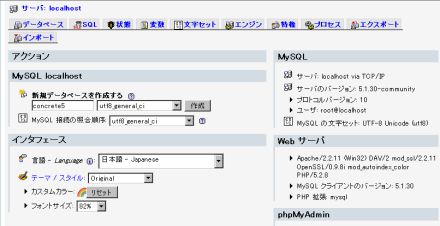 データベース名:concrete5 照合順序:utf8_general_ci ※下記図を参照