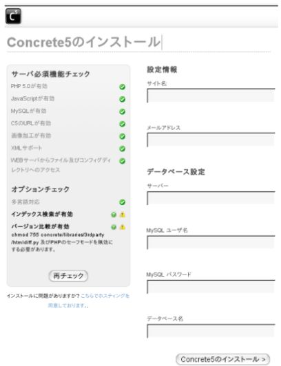 - アクセス- http://localhost/concrete5.3.0.ja/