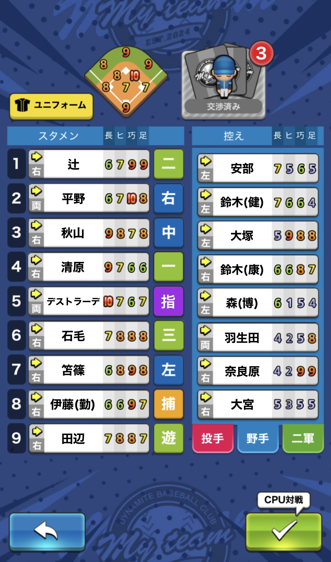 やっぱり僕は王道を征く打線の組み方をしてるのでここに載せるまでもないんじゃないかと思ったりしなくもなかったんですけど個人的にこだわりがあるオーダーは載せることにしました。
