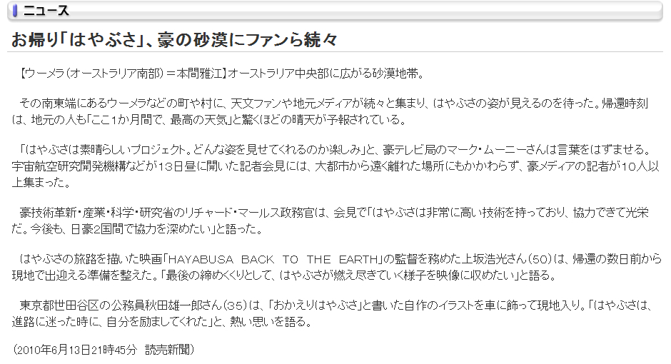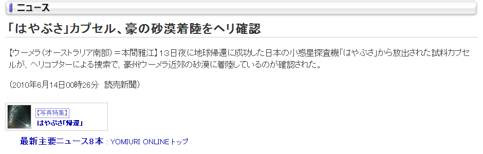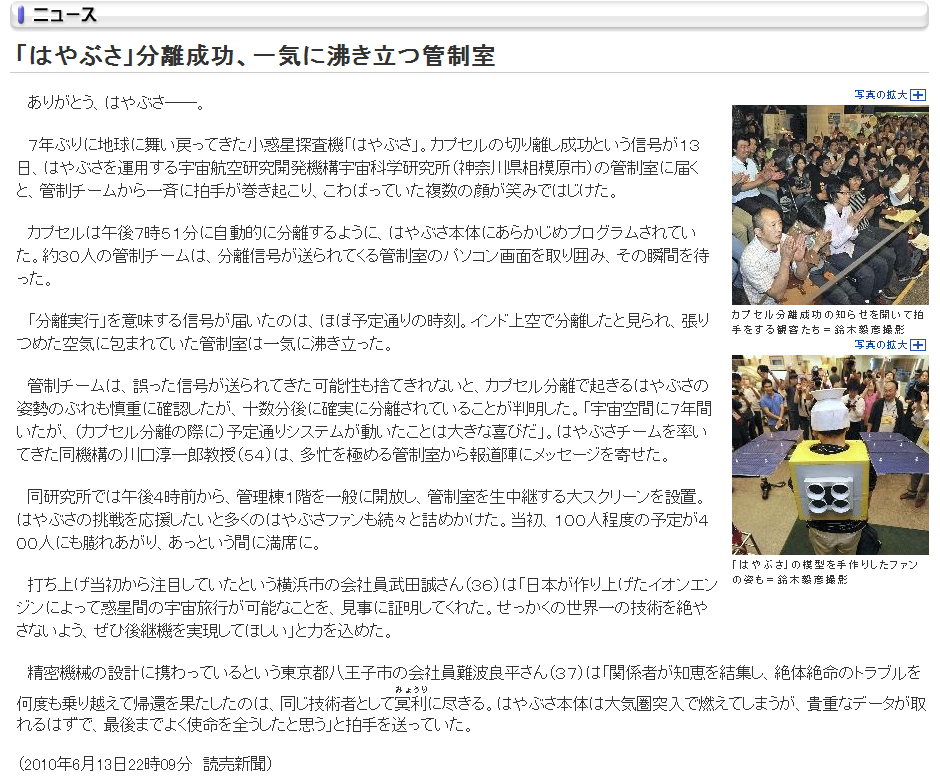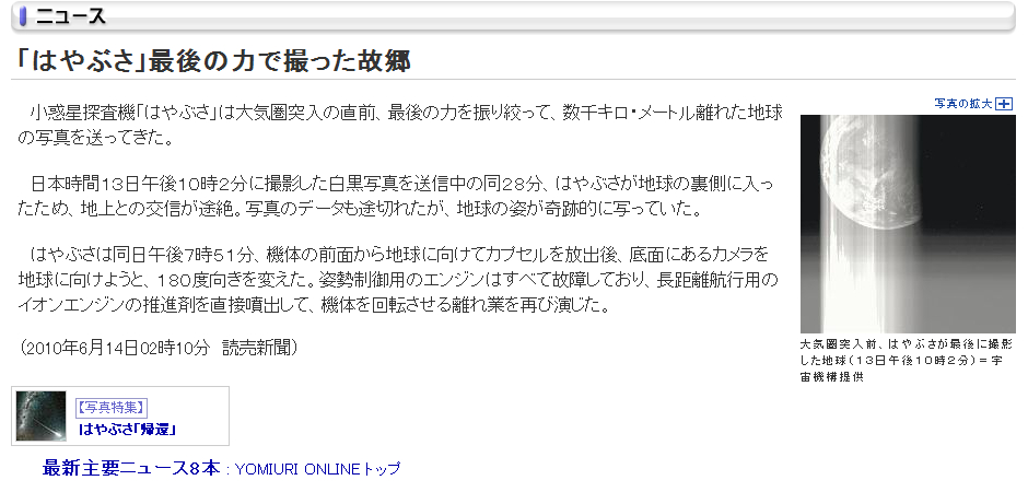 - 「日記/2010年06月14日/探査機「はやぶさ」」のアップロードファイル履歴