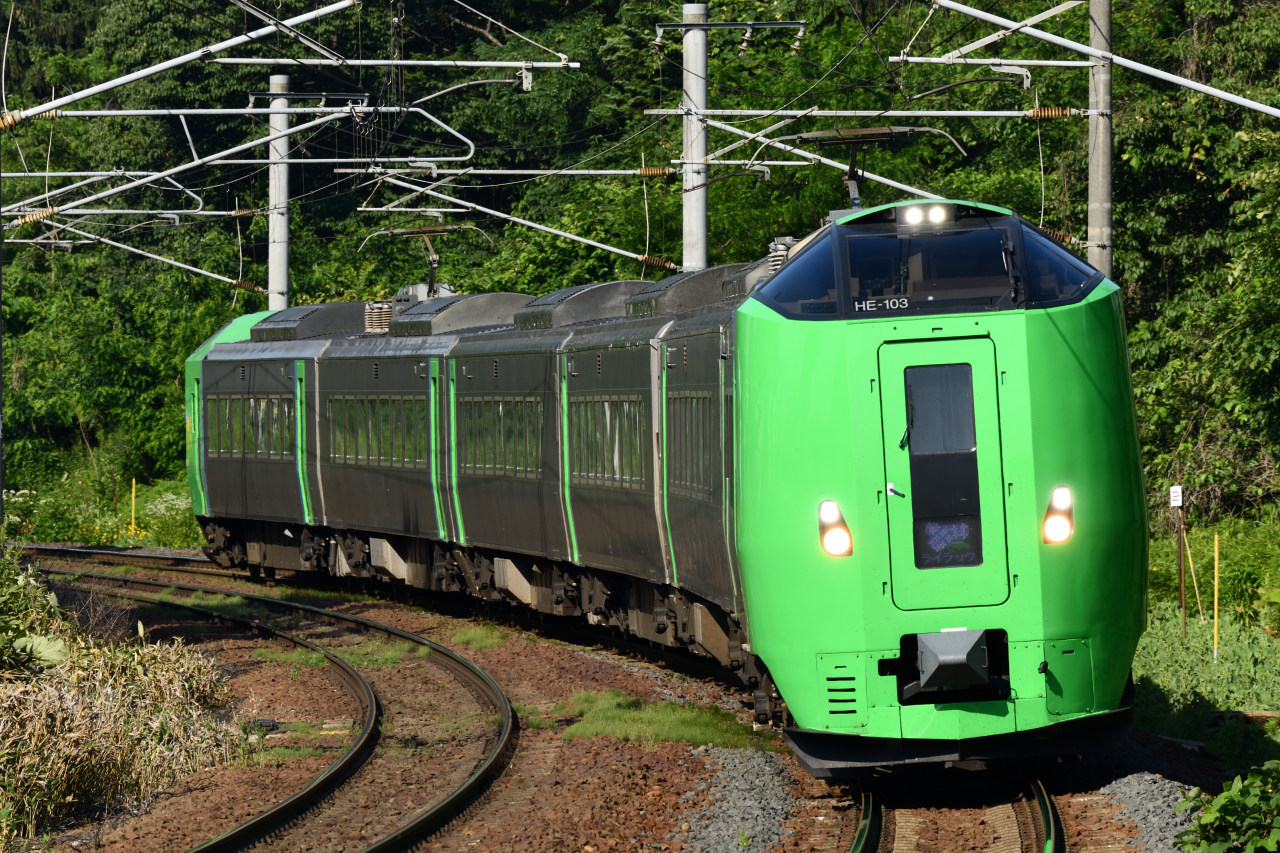 2024.06.29 7:22 f=420mm 時間帯によっては編成後方(編成全体)が木陰に隠れる場合があります。